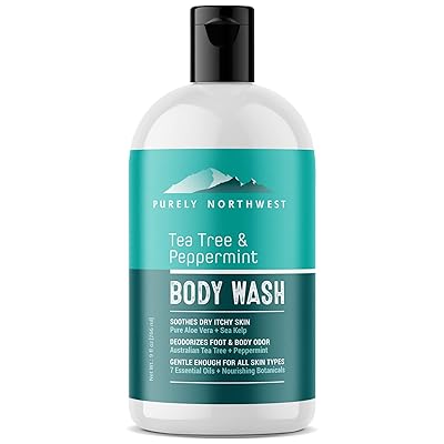 Purely Northwest Tea Tree Body Wash for Men and Women Natural Tea Tree Oil Body Cleanser for Odor, Skin Irritations, Hydrating Shower Gel for Sensitive Skin, Gentle and Refreshing Body Wash